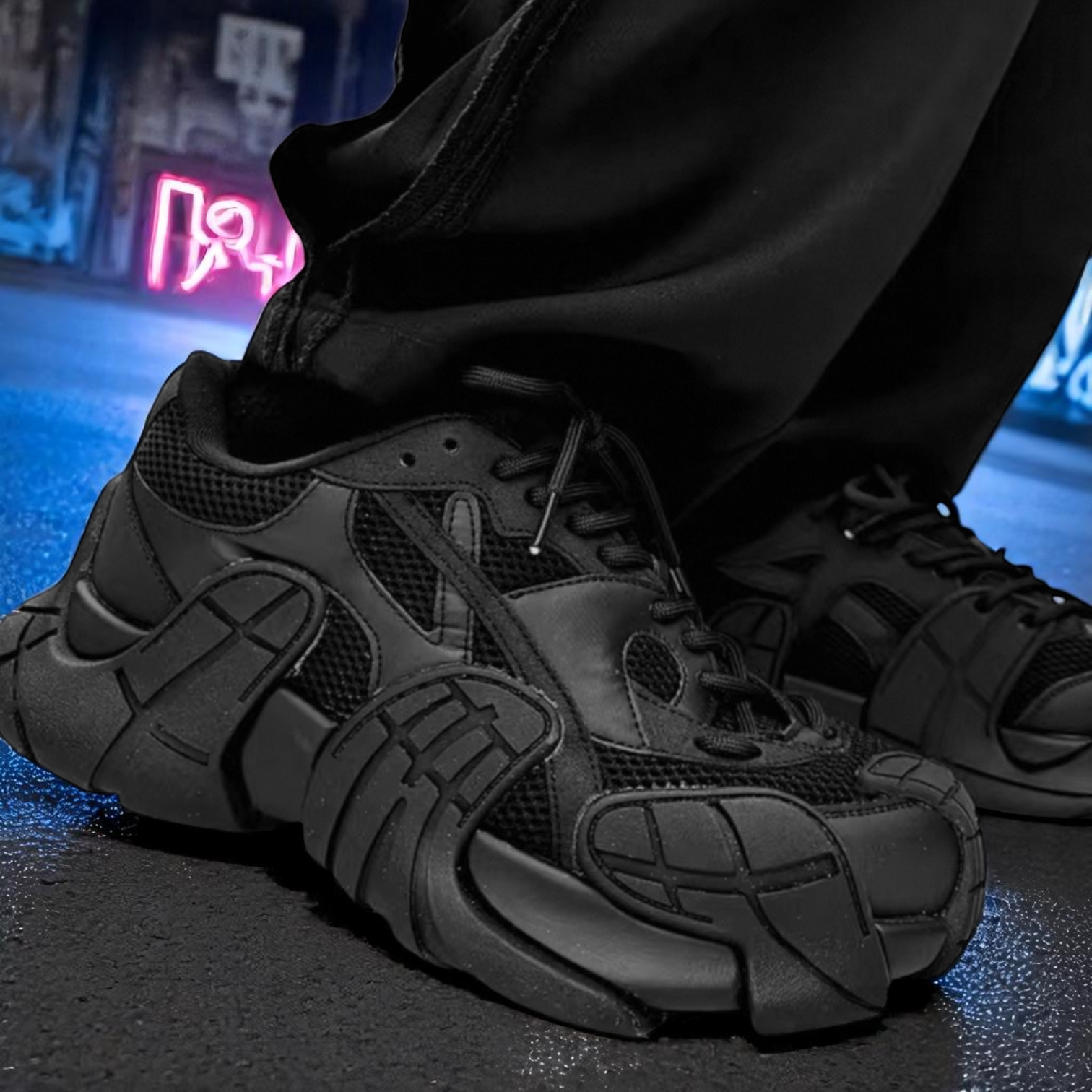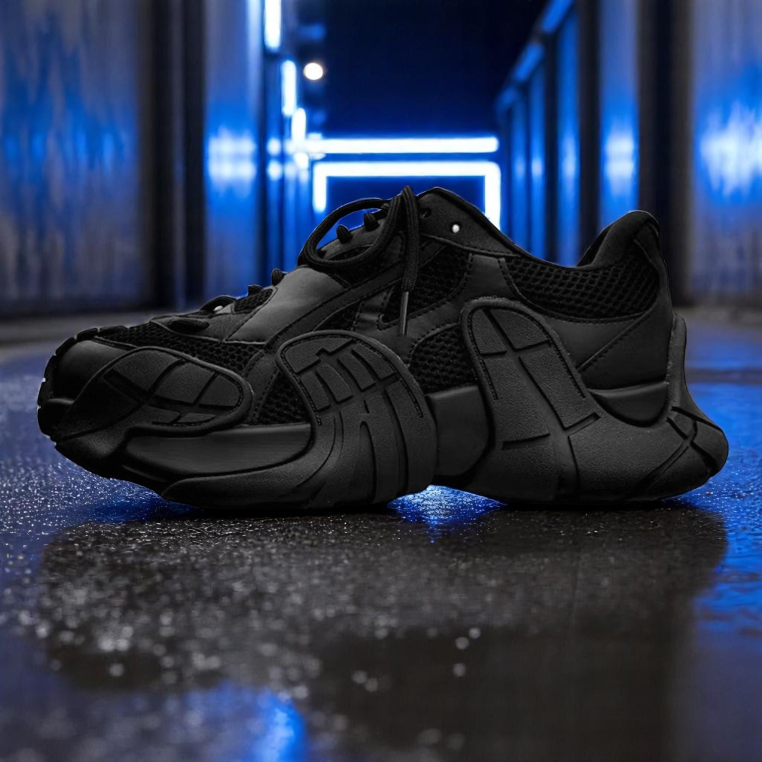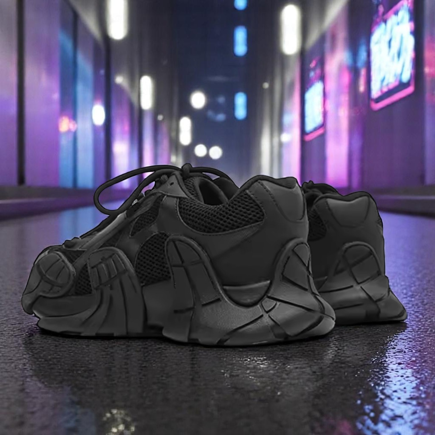 鋭く刻まれたラインと、非対称に突き出たパーツ構造は、もはや"靴"の領域を超えたアーティファクト。